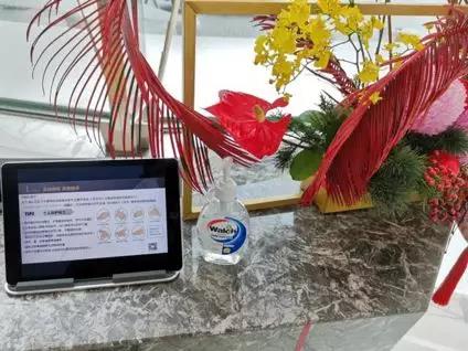 配备免洗洗手液,通过体温测试的来访客户,需在指定位置使用免洗洗手液清洁手部,保持双手干净整洁。