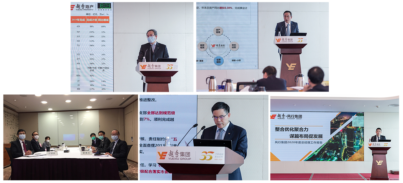 会上,地产板块、广州越秀金控、创兴银行、交通板块、农业食品板块的总经理分别对2019年的经营工作情况和2020年的事业计划要点进行了汇报。