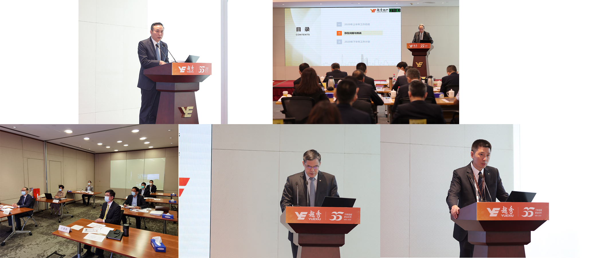 会上,地产板块、广州越秀金控、创兴银行、交通板块、食品板块的总经理分别对2020年上半年工作进行了汇报。