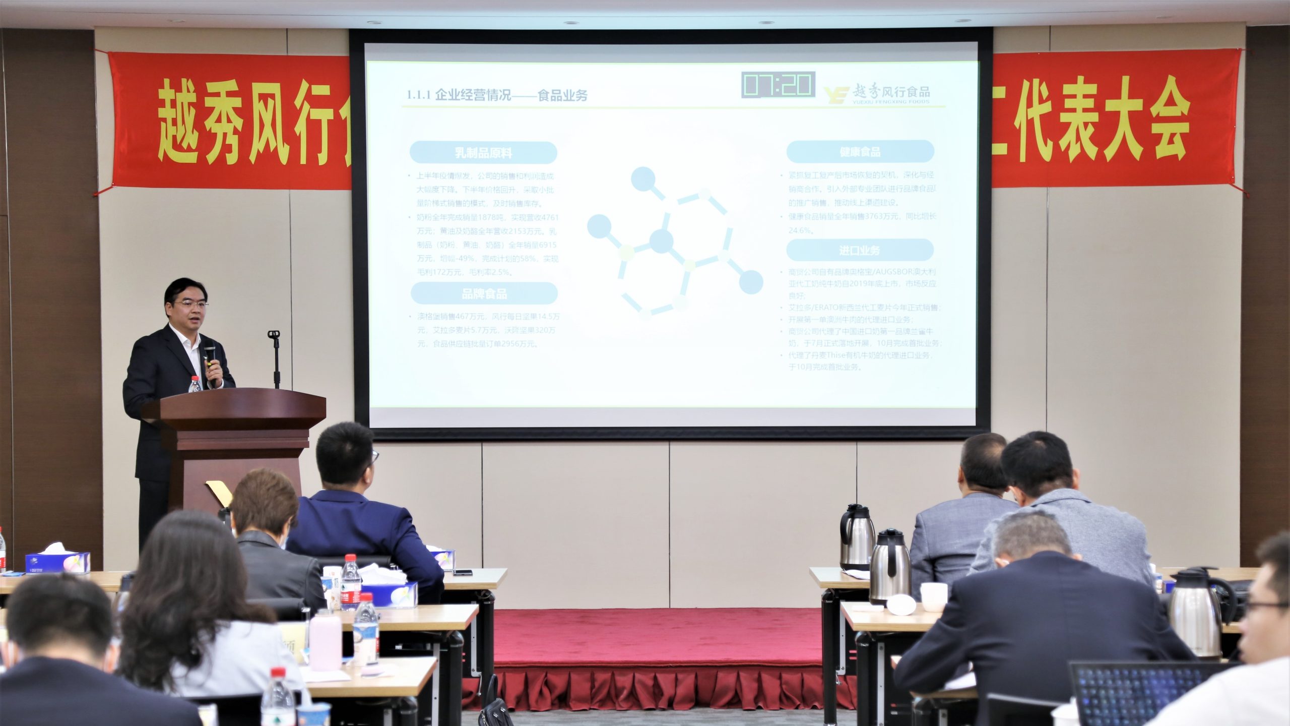 真实干,以“三牛”精神开好局》的讲话,副董事长、总经理韦黎明作《深化战略谋新局 强化能力绘新篇》的2021年度总经理工作报告。会议由越秀风行食品党委副书记常芳主持。