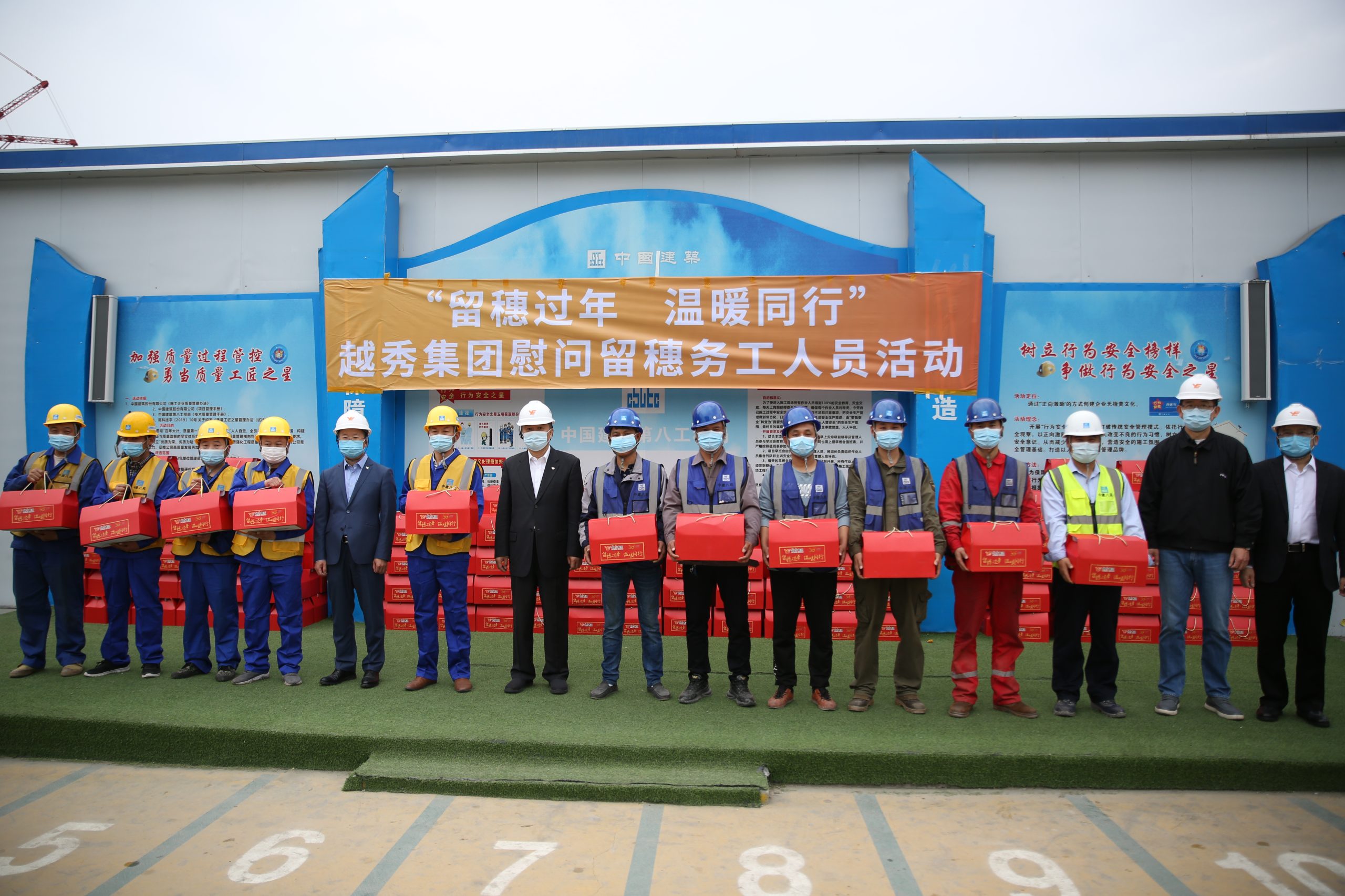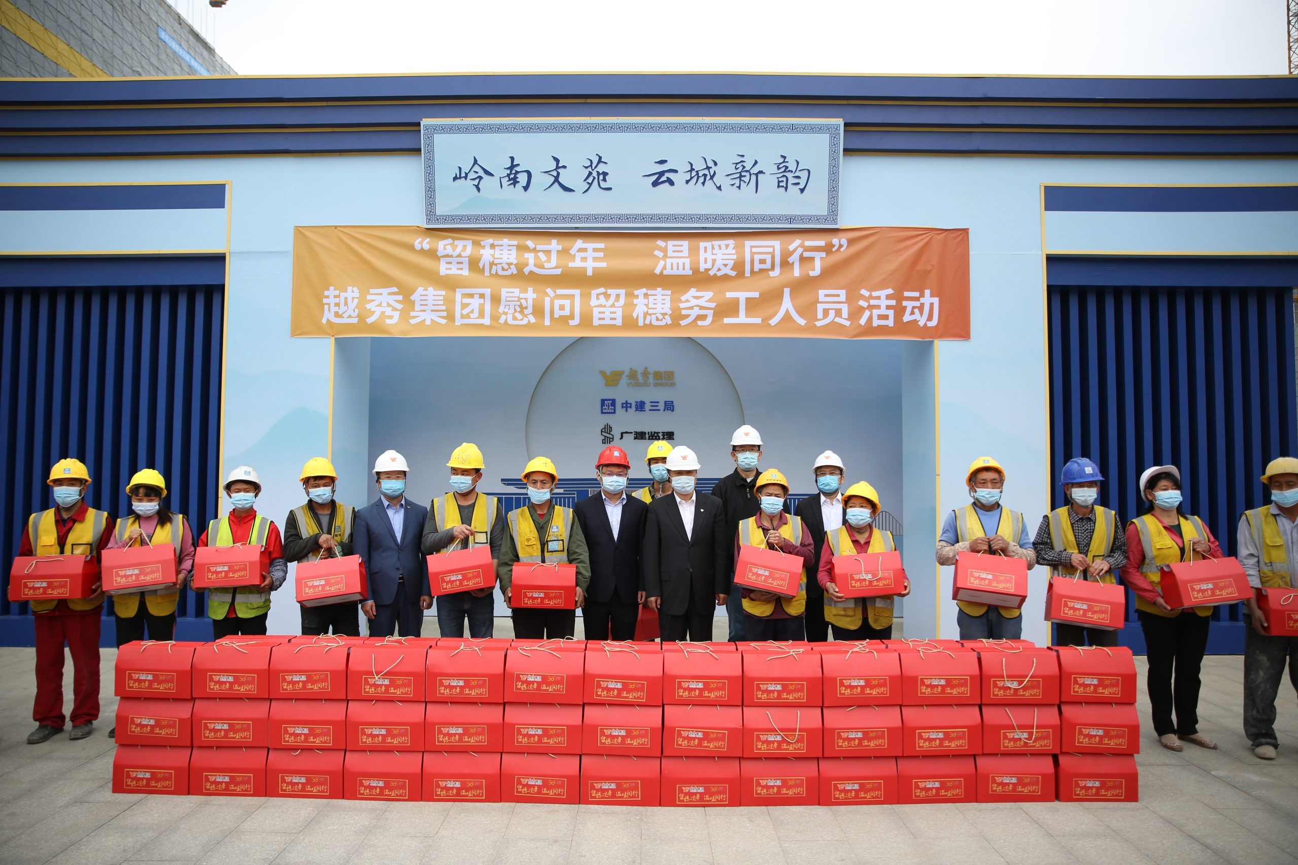 张招兴董事长详细了解工程进展、检查施工安全管理情况,向留穗施工人员致以新春的祝福,并送上集团精心准备的新年礼包。张董指出,广大施工人员坚决响应政府号召留穗过年,保证项目进度,令人敬佩。越秀集团和相关单位将做好留穗施工人员的生活服务保障,安排好节日期间的生活,切实做到暖心、舒心,让大家在广州过一个特殊而又温暖的春节。施工单位要强化安全生产责任意识,严格落实工地防疫措施,做好应急值守,确保施工安全和工程质量。