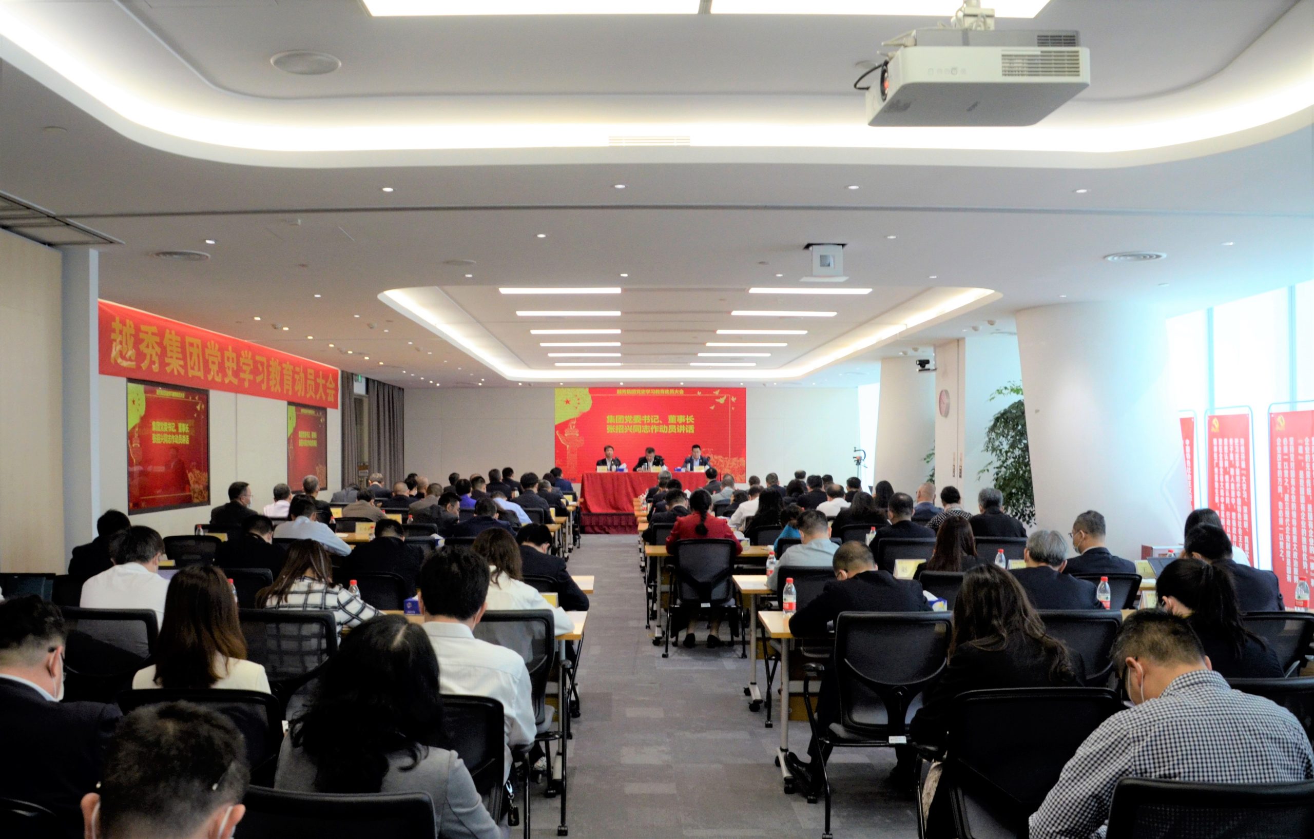 3月16日上午,越秀集团在广州国际金融中心58楼党员教育中心召开党史学习教育动员大会,对集团开展党史学习教育进行动员部署。集团党委书记、董事长张招兴作动员讲话;集团党委副书记、副董事长、总经理叶珊瑚主持会议并传达中央、省、市党史学习教育动员大会精神以及市国资系统党史学习教育动员部署会精神;集团党委副书记、董事伍尚辉就集团落实党史学习教育实施方案及第一阶段学习教育工作安排作说明。会议以视频方式覆盖至集团下属三、四级独立法人企业党组织,共设主分会场42个,参会人员约1200人。
