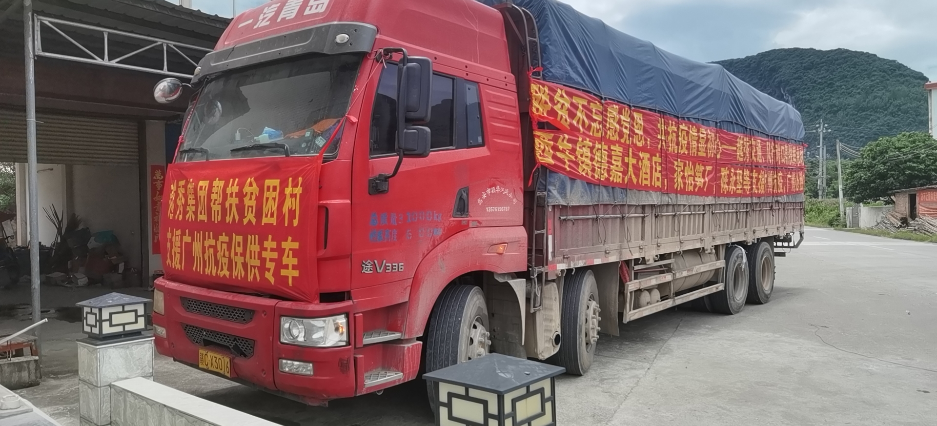 “这5年来,广州越秀集团大力帮扶鲜水村,村内道路畅通了,用水用电方便了,村民收入提高了,这5年中我们鲜水村和越秀集团结下了深厚的兄弟情谊,现在广州遇到了疫情,我们虽然不能前来帮忙,但希望通过送一些村里的蔬菜和瓜果,来表达我们的感恩之情和关切之情。”,鲜水村白石小组陈永坚说道。
