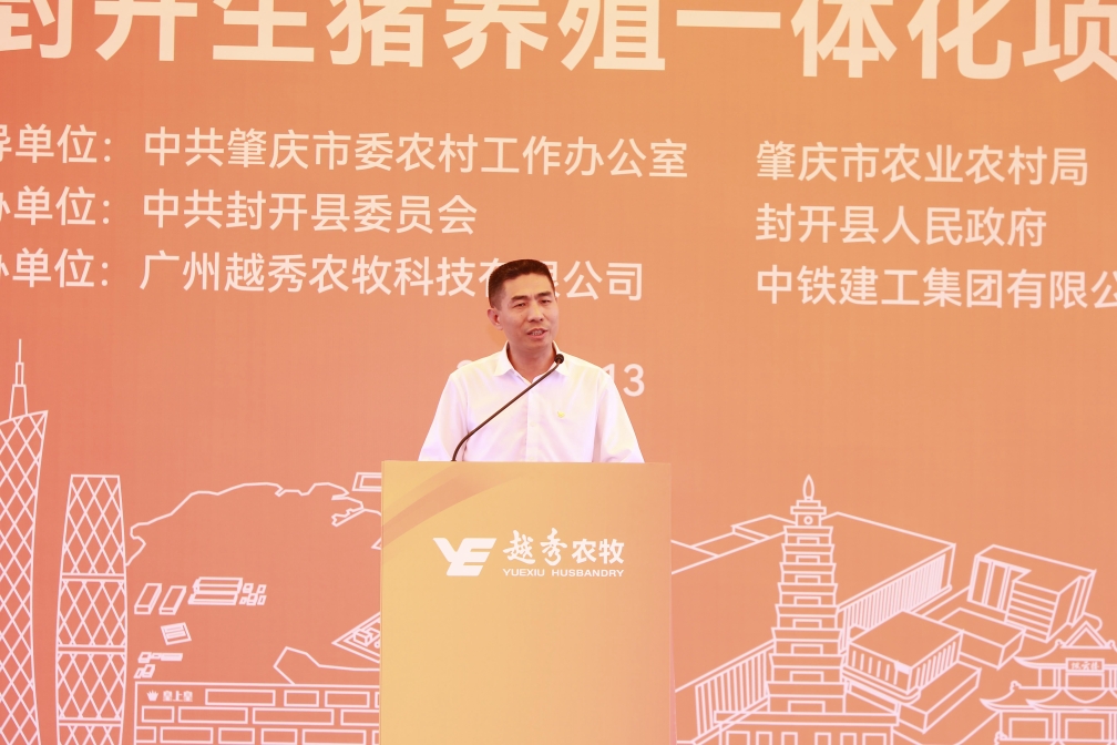 越秀集团副总经理韦黎明在致辞中指出,肇庆作为越秀集团首次集中布局生猪养殖、食品加工业务的重点区域,对集团打造生猪养殖全产业链,提高生猪产业附加值具有重要意义。集团将全力做好项目设计、建设和运营等各项工作,力争早竣工、早投产、早见效,把项目打造成行业标杆典范,成为肇庆现代农业发展的一张靓丽“名片”。越秀集团未来还将进一步拓展合作领域,把肇庆作为链接粤港澳大湾区和大西南地区的重要枢纽和投资重点城市,不断巩固拓展城市运营、金融服务、农业食品等领域的合作,实现资源共享、优势互补、合作共赢,为肇庆经济社会发展贡献越秀力量。