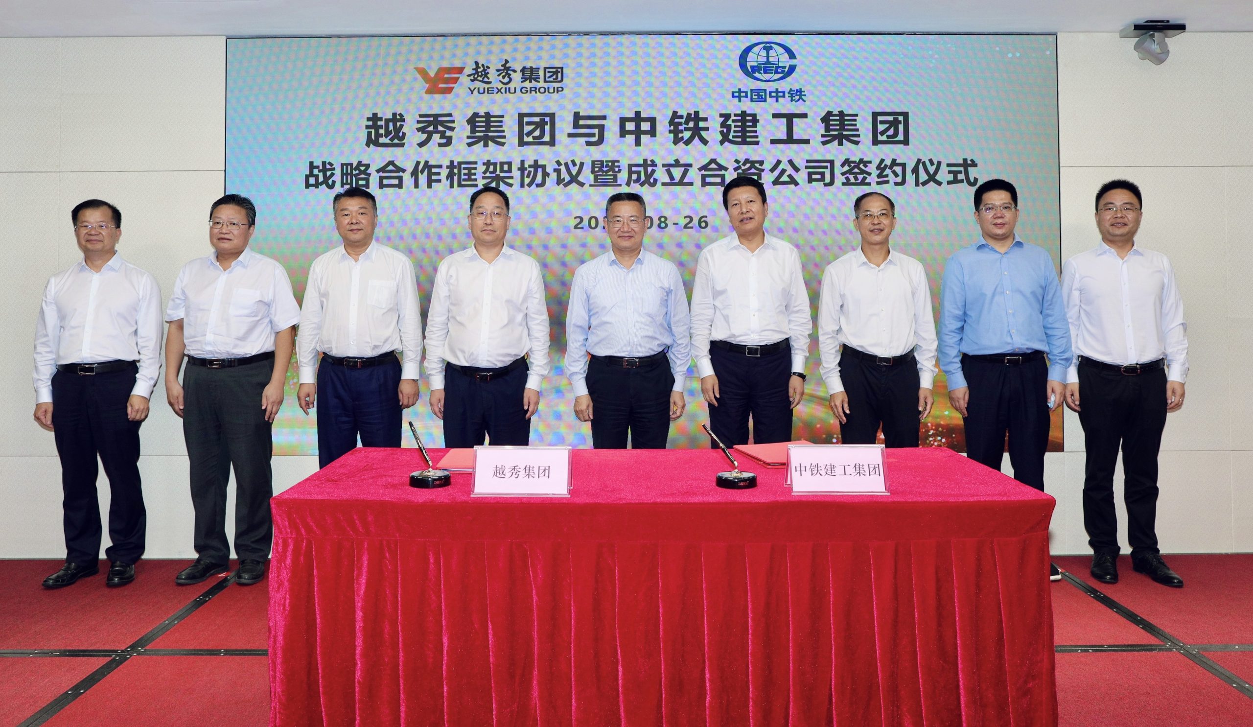 8月26日,越秀集团与中铁建工集团在广州国际金融中心举行战略合作框架协议暨成立合资公司签约仪式。广州市副市长、市政府秘书长陈杰,市住房和城乡建设局局长王宏伟,市国资委主任陈德俊,番禺区区长叶珊瑚,中铁建工集团党委书记、董事长王玉生、越秀集团党委书记、董事长张招兴出席仪式并见证签约。越秀集团管理咨询协调委员会副主任委员林昭远与中铁建工集团总经理何晔庭代表双方签约。